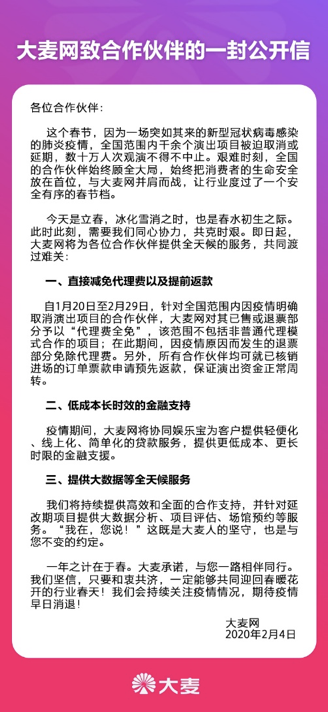 | 大麦网减免佣金提前返款 大麦网致信商家共渡难关:将减免佣金、提前返款 | ||
